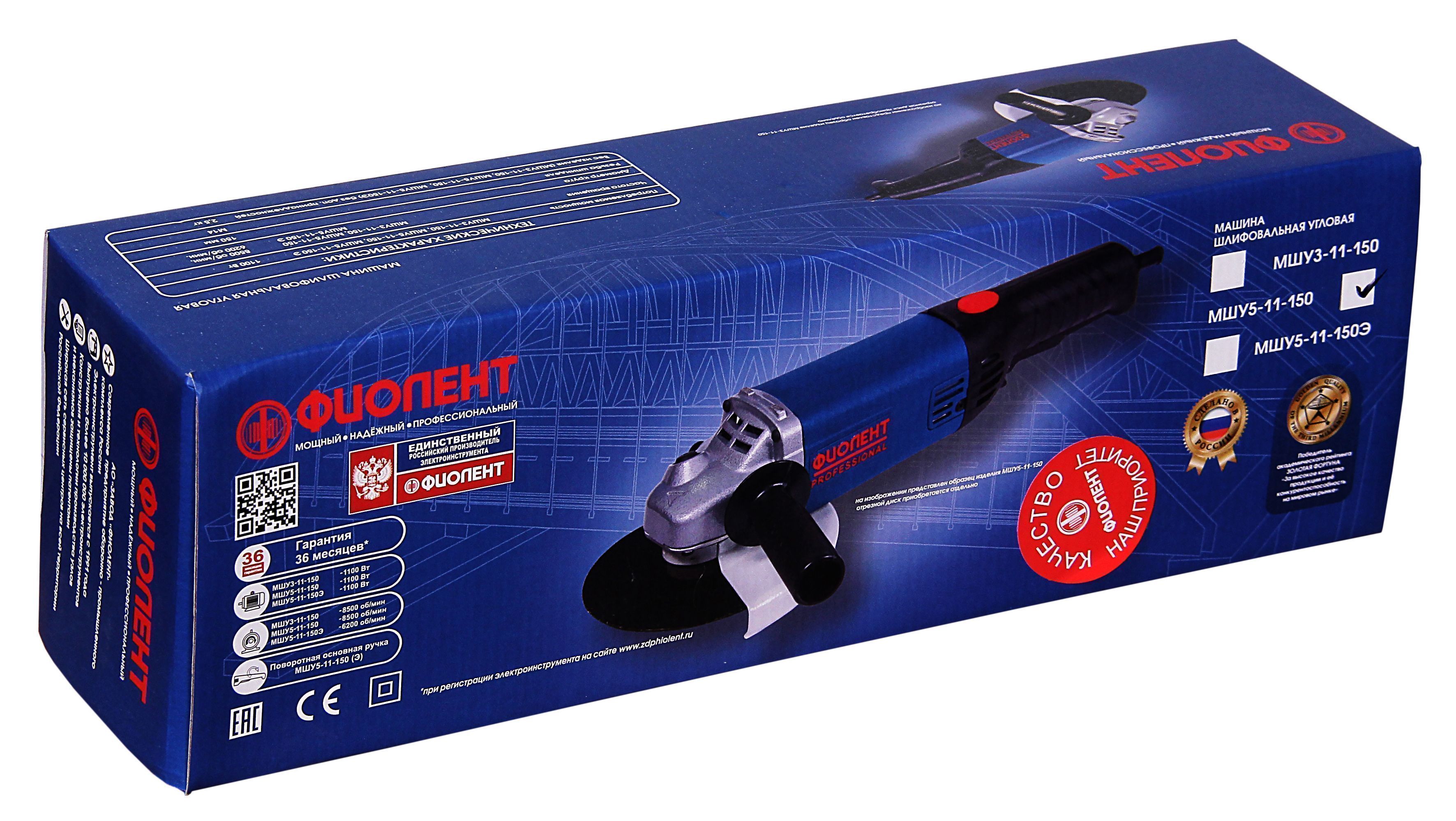 Углошлифовальная машина Фиолент МШУ5-11-150 в продаже по цене 4 957 руб. в Интернет-магазине Проф-инструмент с доставкой в Чебоксарах и Чувашии. Звоните по телефону +8 (800) 302-10-51.