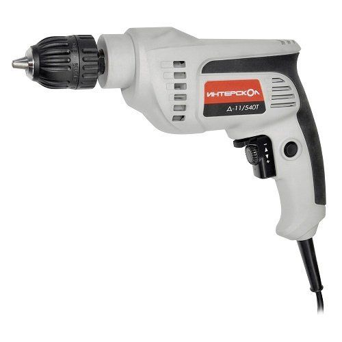 Как и все дрели «Интерскол», Д-11/540ЭР оснащена качественным и удобным выключателем, который совмещает в себе функции включения, реверса и регулировки частоты вращения. Кроме того, можно оперативно менять скорость сверления, «подгазовывая» курком – это помогает аккуратно засверливаться даже в сложных материалах.