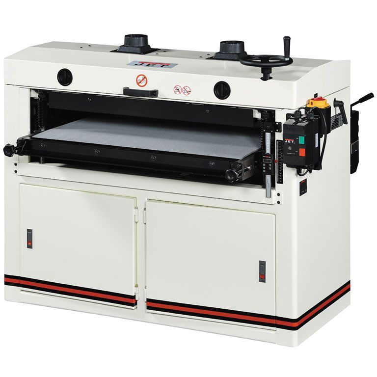 Jet DDS-237 – мощный профессиональный шлифовальный станок, предназначенный для эксплуатации на производстве. При условии небольшого съёма материала подходит для калибрования изделий из дерева, клееных пустотелых фасадов, деталей из МДФ и прочих подобных, причем их сразу же можно будет оклеивать пленкой без дополнительной шлифовки.