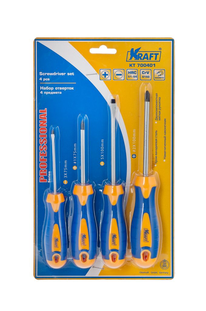 Набор отверток Kraft 4шт. (700401) в продаже по цене 0 руб. в Интернет-магазине Проф-инструмент с доставкой в Чебоксарах и Чувашии. Звоните по телефону +8 (800) 302-10-51.