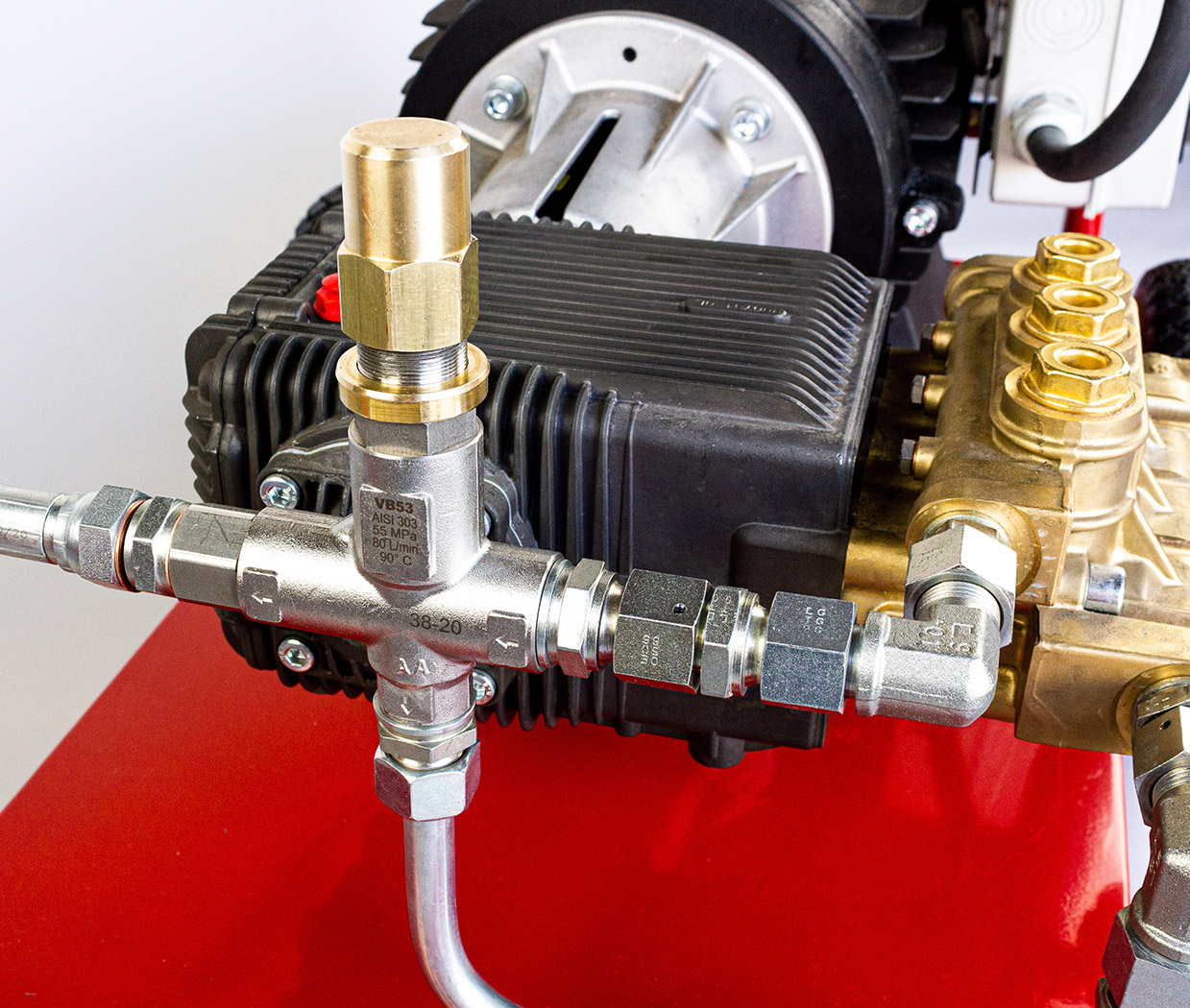 - Трехплунжерный насос высокого давления. Головка из никелированной латуни с высокой стойкостью к механическим нагрузкам гарантирует длительный срок эксплуатации. Термоклапан для защиты от перегрева;