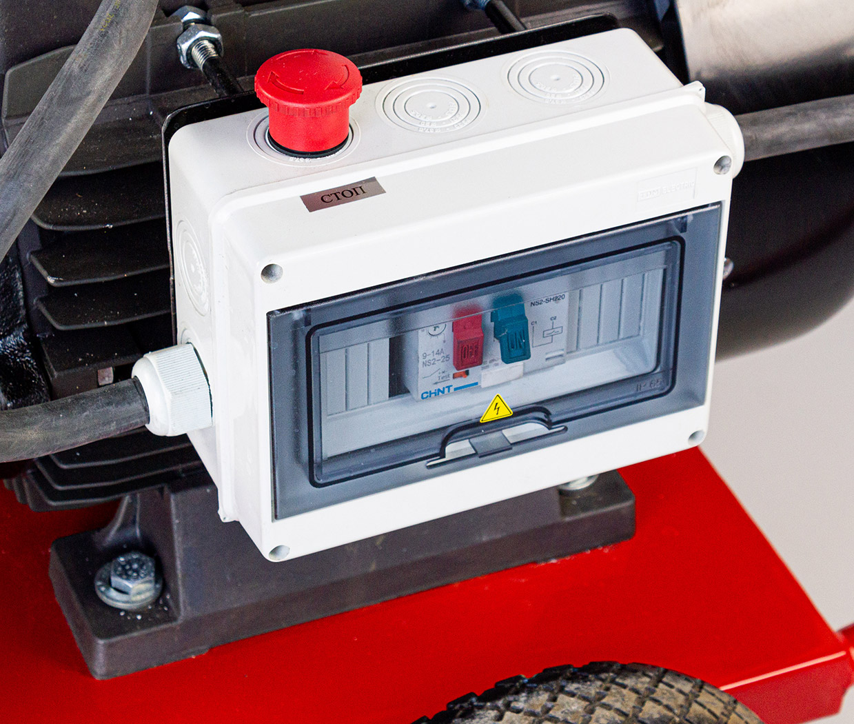 - Степень защиты IP65. Щит управления электродвигателя полностью защищен от попадания пыли и струй воды;