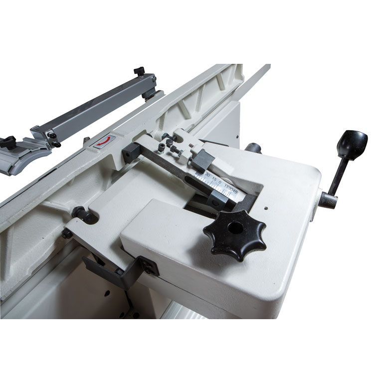 Станок укомплектован массивным чугунным фуговальным упором с регулировочным механизмом червячного типа. Он обеспечивает точную и жесткую установку угла наклона в диапазоне от прямого положения до 45° влево или вправо.