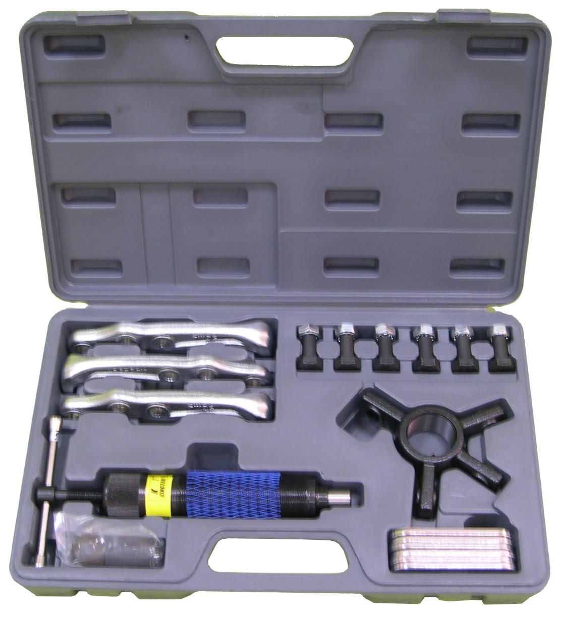Набор подходит для извлечения различного рода подшипников, шкивов, шестеренок и других деталей автомобиля. Благодаря прочной конструкции и большому усилию гидравлического цилиндра, съемник можно использовать для обслуживания грузовых машин, сельскохозяйственной и строительной техники, а так же в промышленности. При необходимости, можно использовать удлинительную штангу для центрального штока цилиндра.