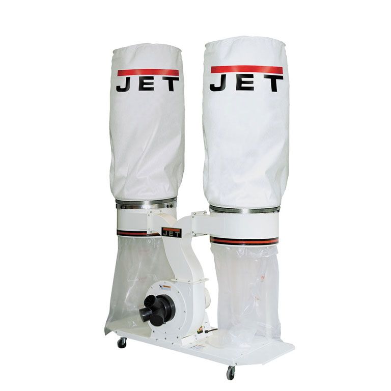 Вытяжная установка Jet DC-1900A имеет два пылесборных мешка и два фильтра, что позволяет использовать её совместно с мощными профессиональными деревообрабатывающими станками, в том числе одновременно с несколькими. Модель оснащается «корпусом-улиткой» и крыльчаткой из толстой листовой стали, которые не повреждаются от сучков и крупных щепок.