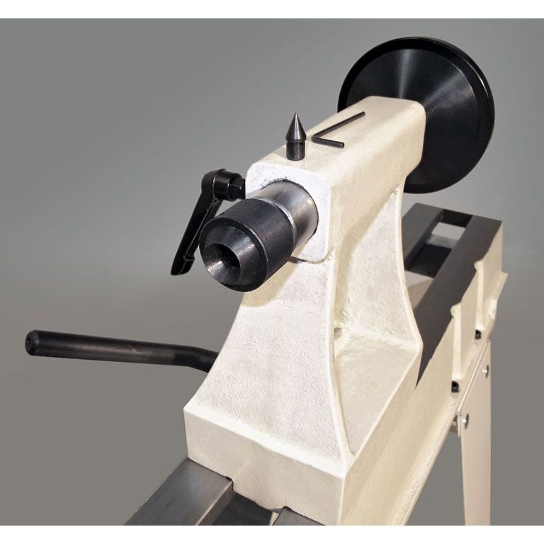 Размеры между центрами и над станиной достаточно велики, чтобы обрабатывать крупные заготовки. Таким задачам соответствует мощный асинхронный 750-ваттный двигатель, имеющий рёбра охлаждения и рассчитанный на продолжительную работу. Для передачи вращения использован клиноременный вариатор, имеющий 10 фиксированных скоростей для удобства переключения. Меняют их, не выключая мотор.