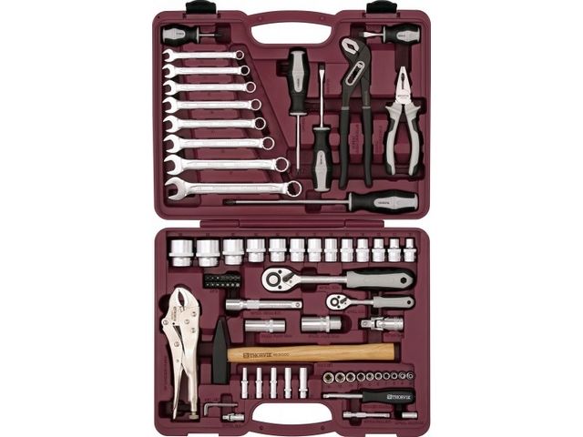 Набор инструментов универсальный 1/4" и 1/2"DR, 72 предмета, UTS0072, Thorvik, выполнен из высокопрочной хромованадиевой стали.