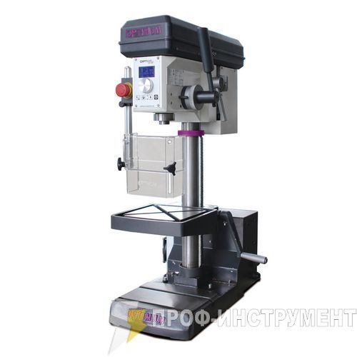 В комплекте с тисками. С мощным бесщеточным приводом Optimum. Изюминка станка – управление режимами резания при сверлении/ нарезании резьбы с цифровой панели управления.